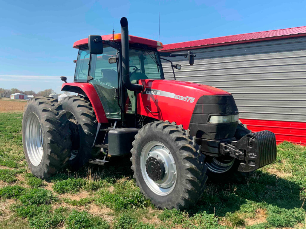 2004 Case IH MXM175 MFWD Tractor, 6,823 Hrs Showing, 160 Hp, CNH 7.5L Diesel, 18 Forward Speeds, 6 Reverse Speeds, 540/Small 1000 PTO, Rear PTO, 4 Hydraulic Outlets, Differential Lock, 380/80R30 Front Tires, 18.4R43 Rear Tire Size, Rear Duals, 30” Tire Row Spacing, 10 Front Weights, Suspended Cab, Left Hand Reverser